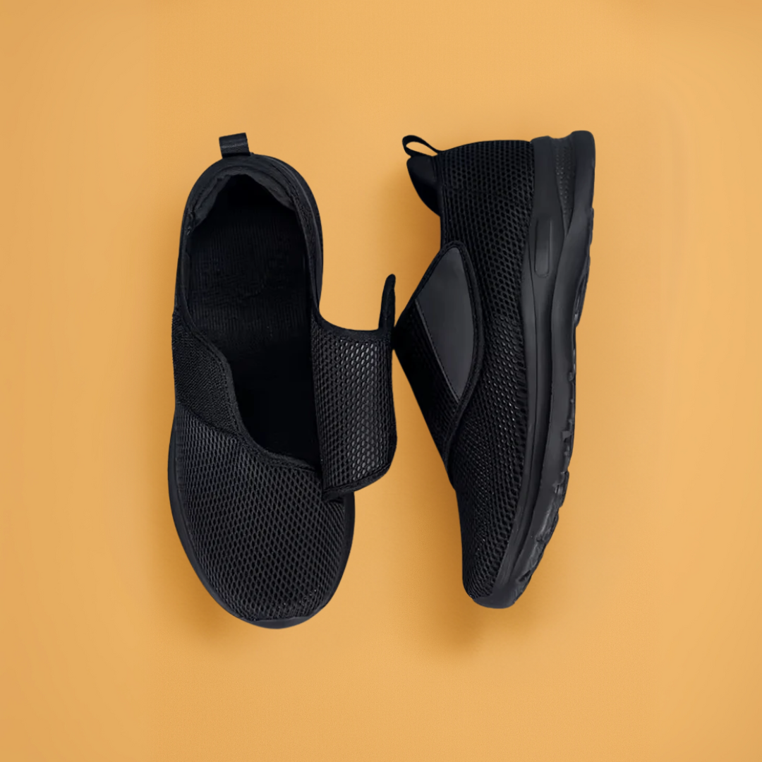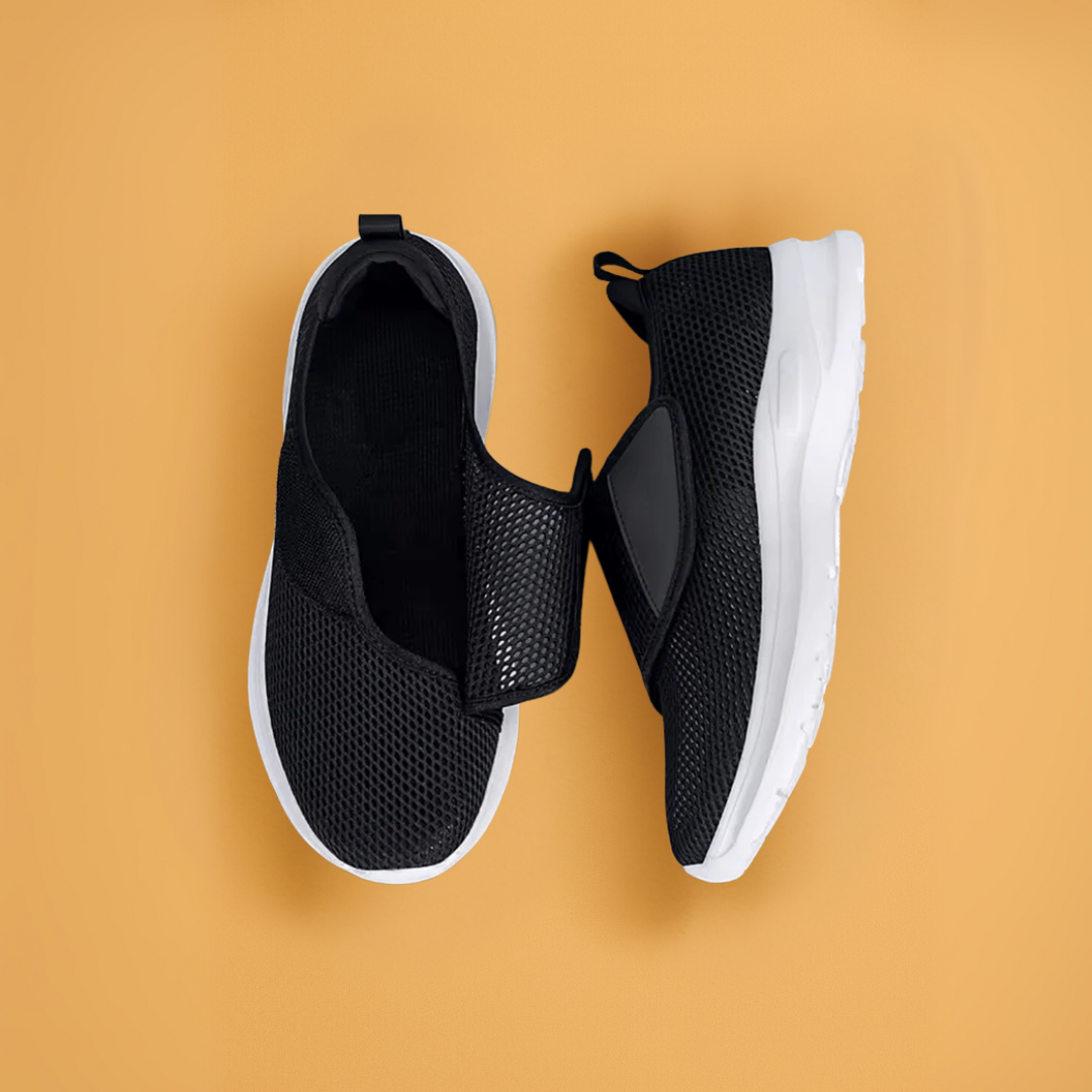 - Verstelbare Sluiting – Dankzij de stevige klittenbandsluiting trek je ze gemakkelijk aan en uit, ook bij verminderde mobiliteit of opgezette voeten.